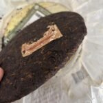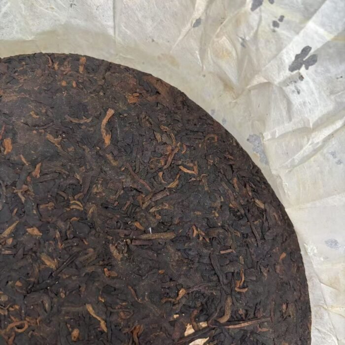 Appearance: The cake features large, robust tea threads interwoven with some rustic stems, showcasing its authentic, hand-processed origins.
